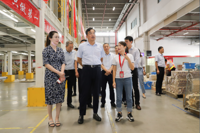 9月10日上午,董淑广一行先后来到昆山市应急救灾物资储备仓库、京东亚洲一号苏州昆山物流园开展调研。在应急救灾物资储备仓库,董淑广详细了解仓库的物资储备种类、软件开发运用、日常运行模式等情况。得知昆山正在高起点规划一座占地20亩的设现代化、标准化物资储备库,并拟列入2021年全市重点工程时,董淑广给予高度评价,赞赏昆山的物资储备规划走在全省前列。在京东亚洲一号苏州昆山物流园,董淑广一行参观了京东亚洲一号苏州昆山物流园区,观摩了园区的生产运作流程,智能化运作模式,了解了物流园区的运行体系。现场听取了京东方面就技术优势、运营体系、战略布局、华东地区经营网点、以及与政府机构合作的成功案例等作了详细介绍。
