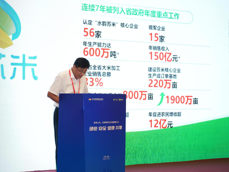 在推介会上,李德副局长指出,“水韵苏米”已走过8年建设历程,依托“水韵苏米”产业研究院和江苏粮食科技创新研究院,江苏不断推动稻米产业由政策支持、要素支撑转向创新驱动;全省制定并实施了全国首个省级稻米全产业链团体标准,建立起严格的质量追溯体系,确保每一粒米都带着“出生证明”走向千家万户。