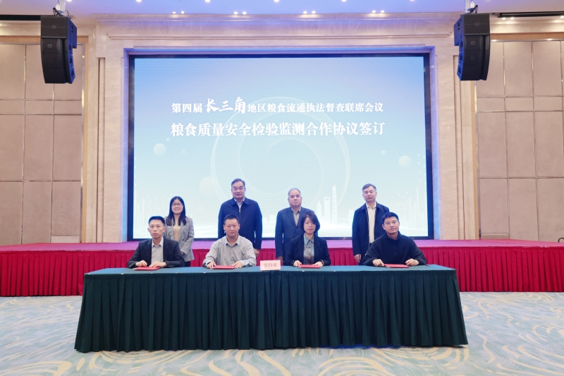 10月21日,第四届长三角地区粮食流通执法督查联席会议在上海召开,省粮食和物资储备局党组成员、副局长董淑广出席会议并代表江苏作交流发言,上海、江苏、浙江、安徽三省一市粮食和物资储备局负责同志在会上签署了《粮食质量安全检验监测合作协议》。