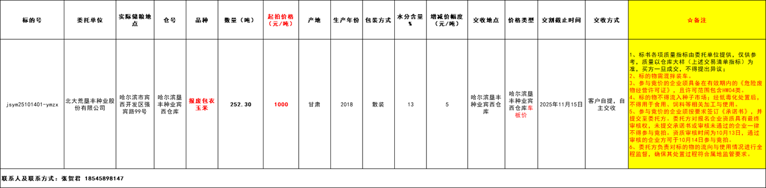 受北大荒垦丰种业股份有限公司委托,江苏粮油商品交易市场暨玉米分中心举办本次报废包衣玉米竞价销售交易活动。具体事宜公告如下: