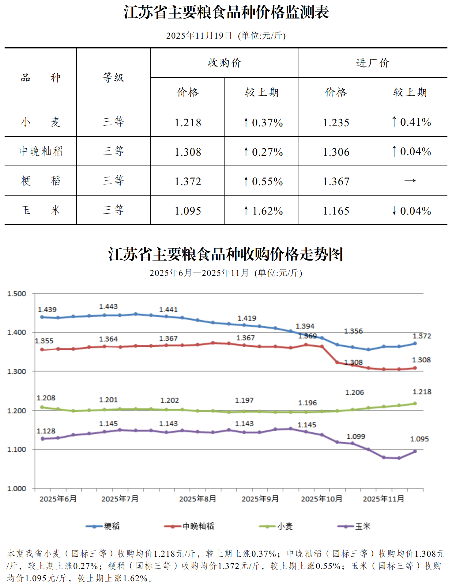 2025年第46周全省粮油价格行情表