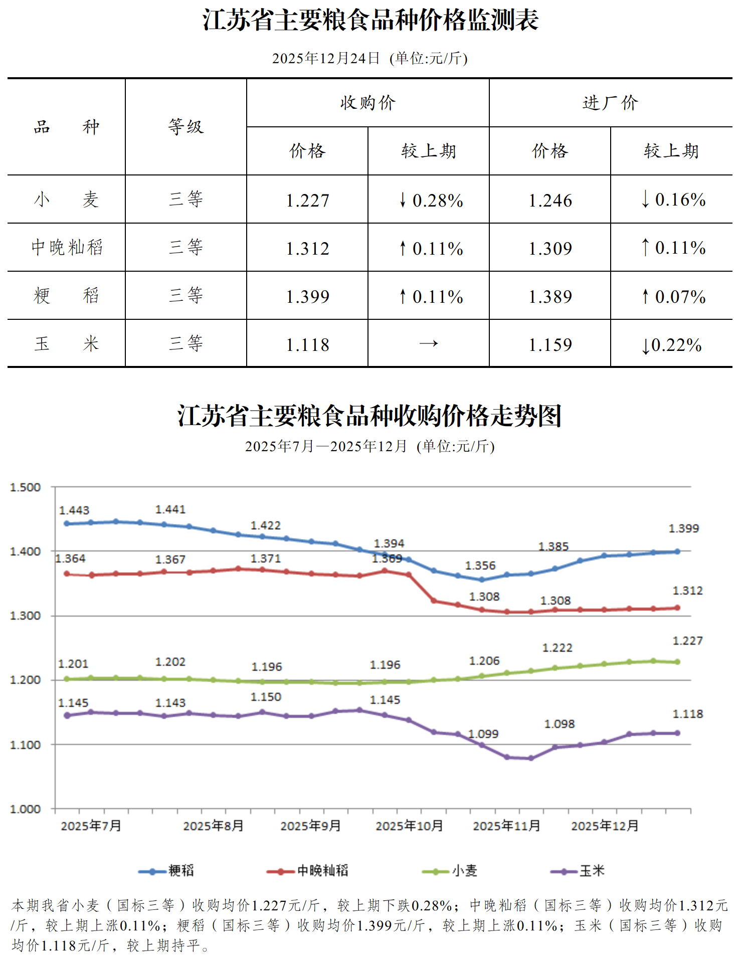 2025年第51周全省粮油价格行情表