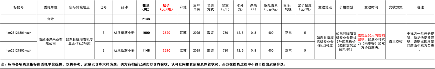 受南通凌洋米业有限公司委托,江苏粮油商品交易市场暨苏中分中心举办本次地方小麦竞价销售交易活动。具体事宜公告如下: