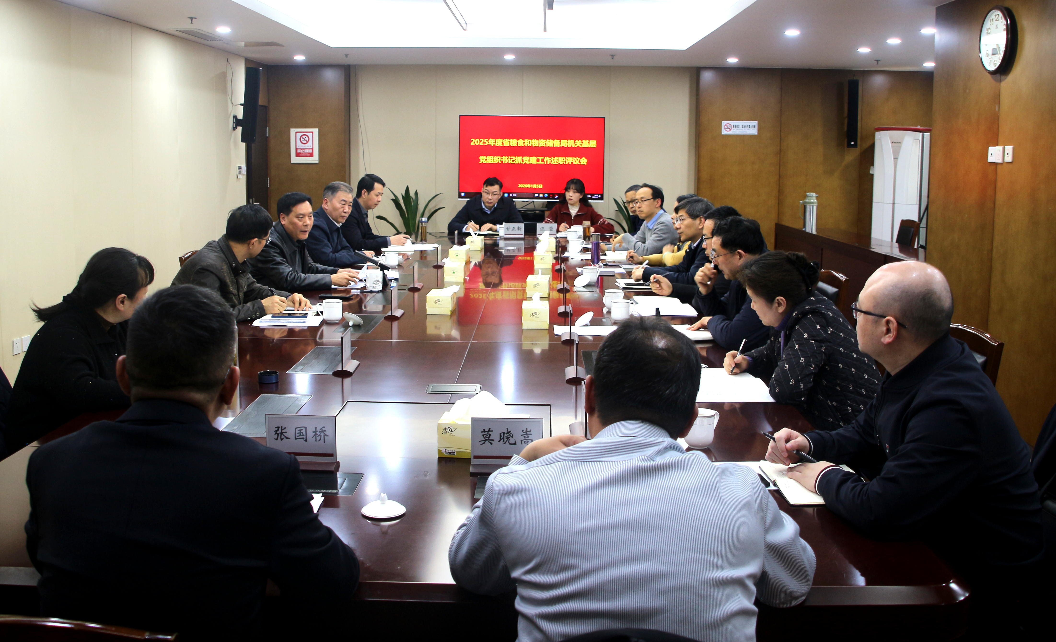 1月5日,省粮食和物资储备局召开2025年度机关基层党组织书记抓党建工作述职评议会,听取基层党组织书记工作述职并深入剖析存在的问题,对新的一年基层党建工作作出部署。局党组成员、副局长、机关党委书记李德主持会议并作点评讲话。