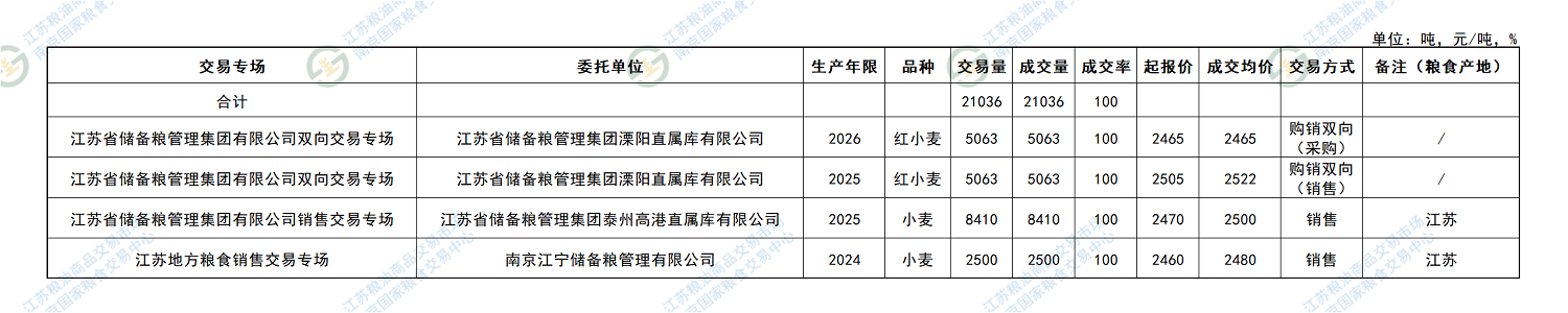 2月14日江苏省地方粮油交易结果