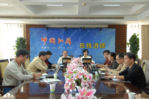 10月13日,江苏省粮食局副局长严长俊带领办公室、财务审计、购销调控、产业指导和政策法规和省粮油质量监测所等处室负责人走进江苏省政府门户网站“中国江苏”“在线访谈”栏目,与广大农民、粮食经营与加工企业、粮食经纪人、基层粮食行政管理部门和其他关心粮食工作的网友就今年我省秋粮收购的相关政策进行了网上交流和访谈。