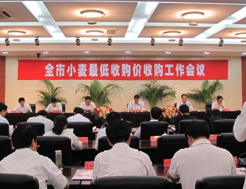 为贯彻落实国家小麦最低收购价政策和全省夏粮收购工作会议精神,分析当前小麦收购和市场形势,安排部署今年的夏粮收购工作任务,淮安市政府于6月2日召开全市小麦最低收购价收购工作会议。各县(区)政府分管县(区)长,粮食局局长、分管局长、购销科长,农发行主要负责人;市发改委、财政局、工商局、质监局、物价局等部门负责人;市粮食局中层以上干部;中储粮淮安直属库、江苏淮安国家粮食储备库、市农发行领导班子成员;市粮食局直属单位负责人参加了会议。