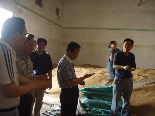 在溧水晶桥杭村粮管所,徐和宁现场查看夏粮收购情况,向粮食经纪人和售粮农户详细了解今年夏粮的收获、销售情况,并征求企业和农户对做好粮食收购工作的意见。并登仓爬梯,查看已经入库小麦的情况,对该县今年小麦水份、容重等质量指标表示满意,并要求企业严格执行国家托市收购标准和价格,达到政府放心、农民满意。