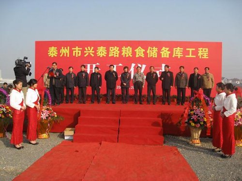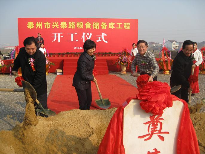泰州市政府丁士宏副市长、毛正球副秘书长、泰州市物价局宗长银局长、泰州市粮食局局长刘金山、泰州农业开发区申泰州主任、中储粮直属库金龙克主任及相关部门负责人出席开工仪式。