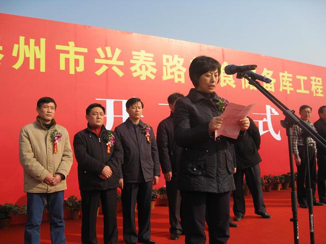 12月20日上午,泰州市兴泰路粮食储备库举行开工仪式,省粮食局王元慧局长出席仪式并讲话。