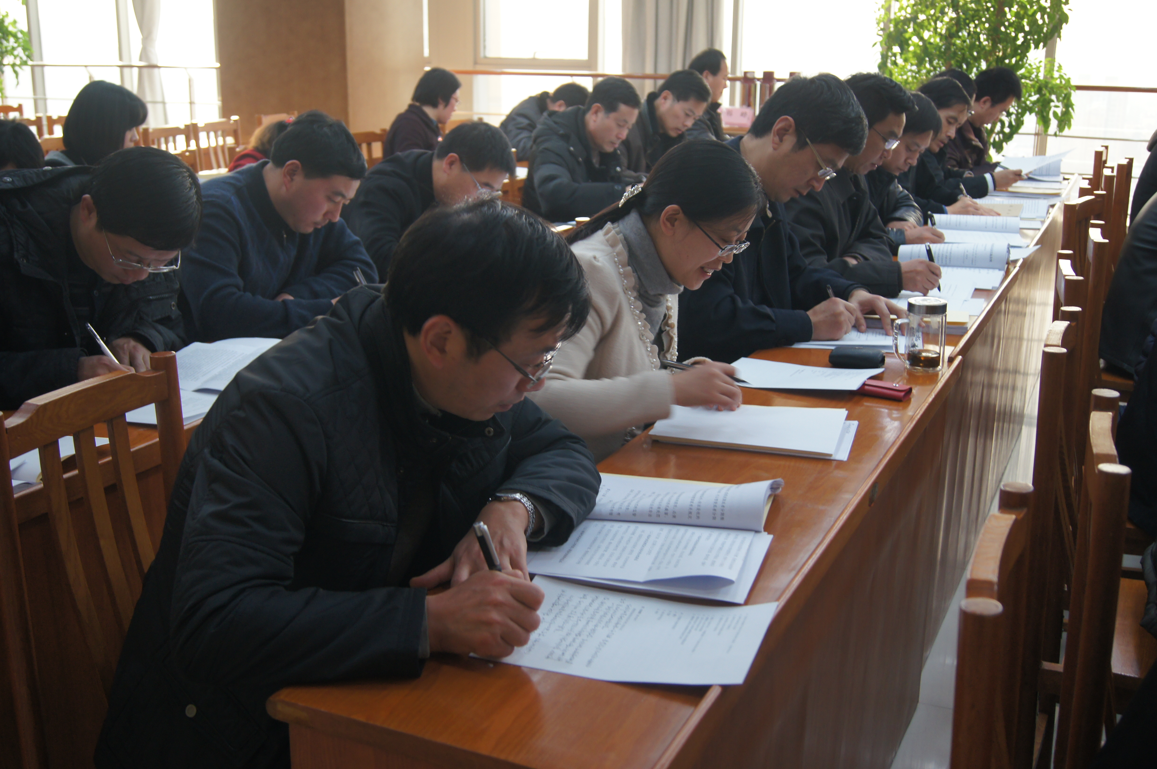 听取情况汇报后,考核组仔细查阅了我局依法行政工作相关文件资料和执法案卷,查看了我局行政执法系统和行政权力网上公开透明运行过程。考核组还组织我局33名机关干部开展依法行政知识考试。朱新华副局长、张生彬副局长、韩峰副巡视员参加了考试。