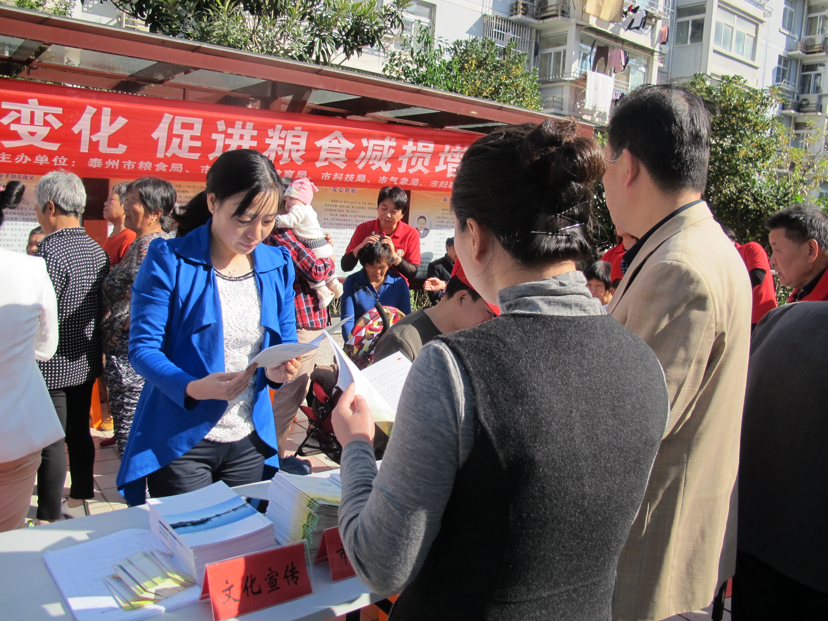在第36个世界粮食日和第26个全国爱粮节粮宣传周来临之际,泰州市粮食局联合市妇联、海陵区妇联等单位,走进海陵区鲍坝社区,开展世界粮食日和全国爱粮节粮宣传周宣传活动,拉开了泰州市爱粮节粮宣传周的序幕。