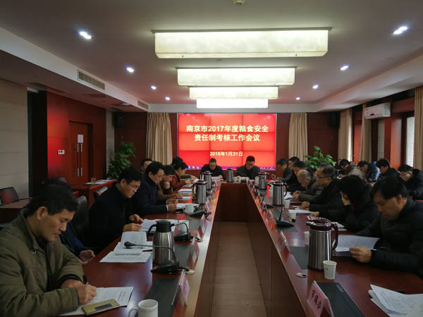 1月31日,南京市召开粮食安全责任制考核工作会议,专题研究本市2017年度粮食安全责任制落实情况自评报告(代拟稿)。南京市粮食安全责任制联席会议考核成员单位相关负责人、市粮食局机关各处长参加了会议。