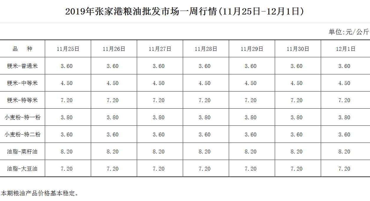 张家港市粮油批发市场一周行情(11月25日-12月1日)