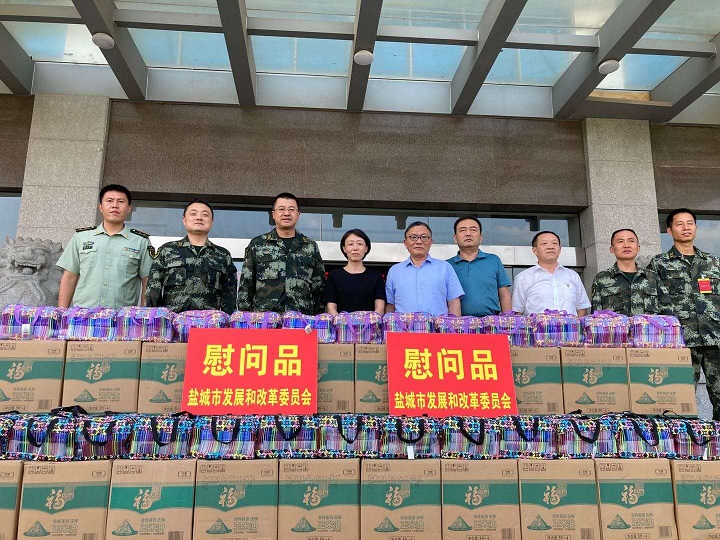 在中国人民解放军建军93周年即将到来之际,7月24日下午,盐城市发改委党组成员、副主任袁明明、二级调研员姜雄基带领委军民融合处、军粮办负责同志,带着全市发改系统干部职工的深情厚谊,来到盐城军分区、盐城市武警支队开展慰问活动,向部队官兵致以节日祝贺,并送上慰问品。盐城市委常委、军分区司令员李泽勇、政委马小军、盐城市武警支队政委徐恒俊率党委班子成员接待了慰问组一行。