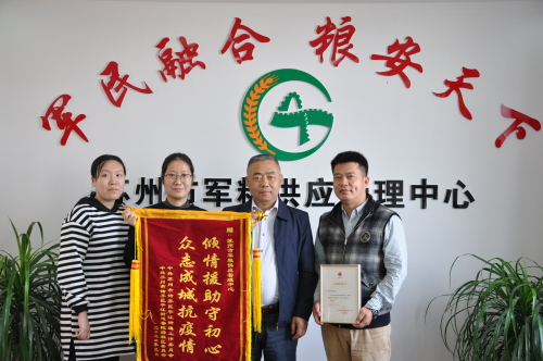 4月22日,察院场社区工作人员将写有“倾情援助守初心 众志成城抗疫情”的锦旗送到苏州市军粮供应管理中心,代表社区居民感谢单位全体干部职工在疫情防控期间参与社区志愿服务。