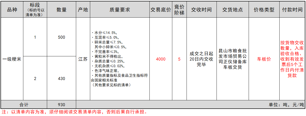 1. 《江苏地方粮食竞价交易细则》、《交易清单》等交易文书为本公告的组成部分,竞价人交易前应一并查看,一旦报名视作认同相关内容并须切实履行。