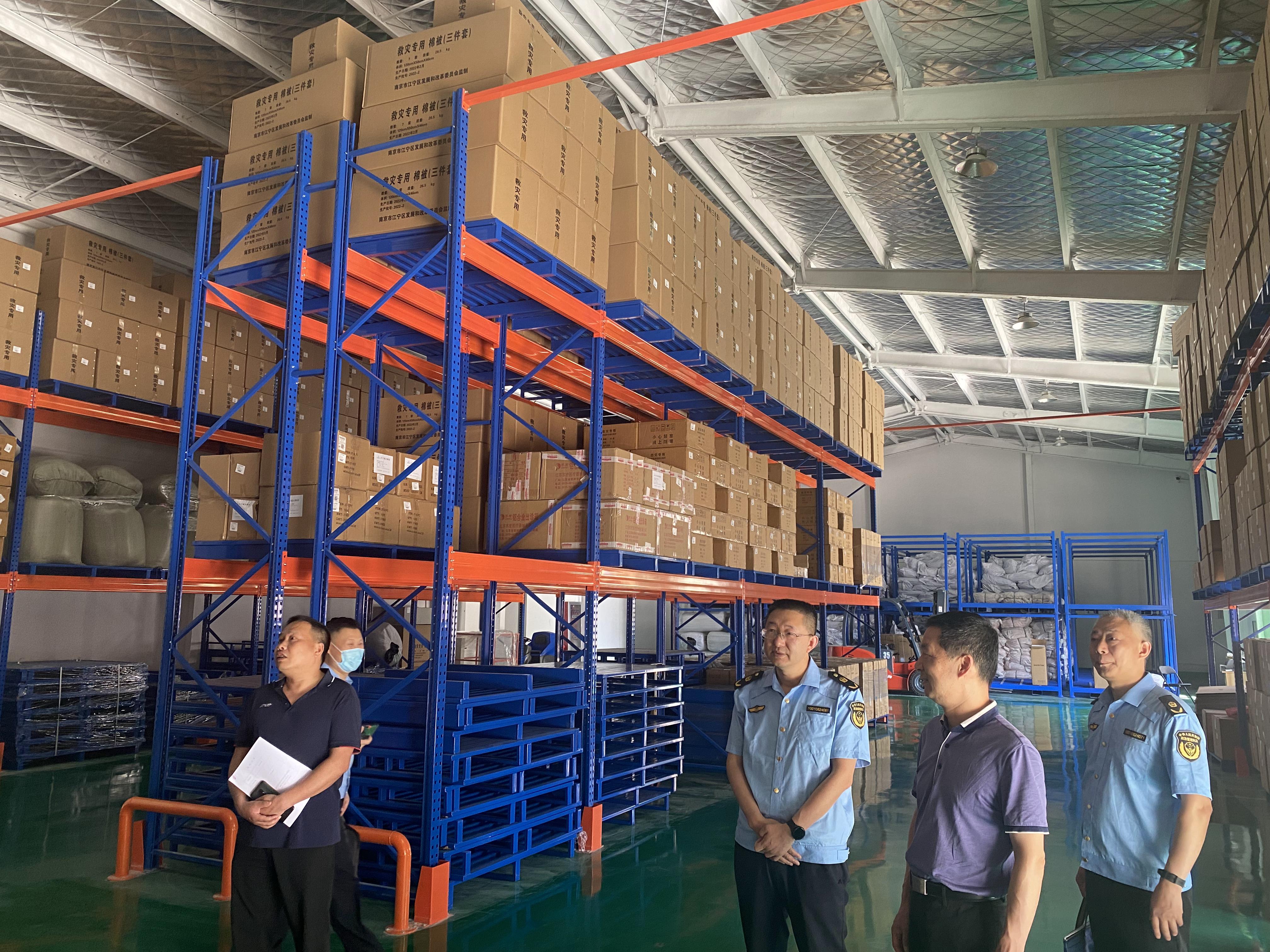 检查组在南京春化应急物资储备库进行了实地检查,重点对储备救灾物资、应急抢险救援装备物资的数量、质量、储运调拨、防潮防盗等综合管理情况进行检查。同时强调应急物资储备库应加强物资管理,严格落实汛期值班值守制度,确保救灾应急物资储得实、调得动、用得好。