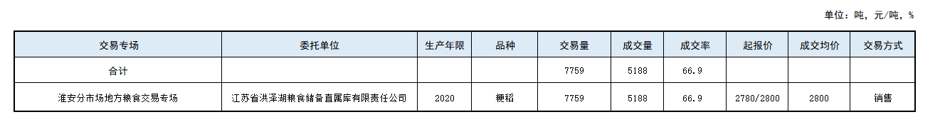 7月26日江苏省地方储备粮油交易结果