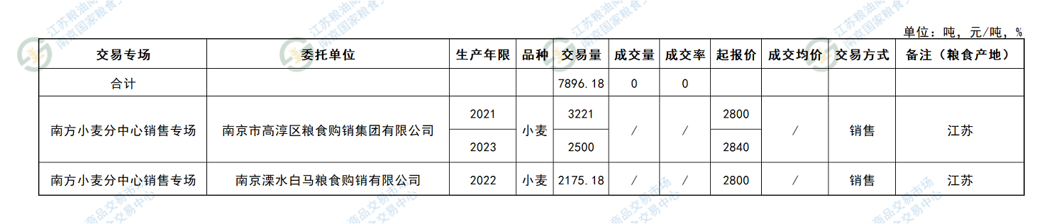 2月19日江苏省地方粮油交易结果