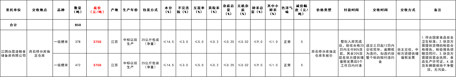 受江阴白屈港粮食储备库有限公司委托, 江苏粮油商品交易市场暨南方小麦分中心举办本次大米竞价采购交易活动。具体事宜公告如下:
