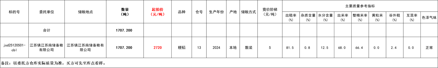交收地点:江苏镇江苏南储备粮有限公司,详见交易清单。