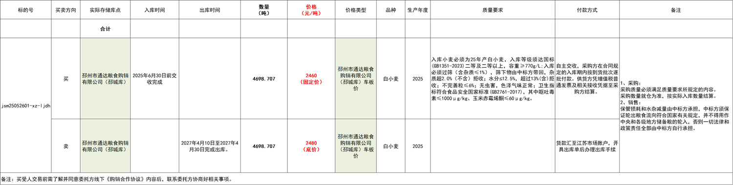 (一)本次交易采用国家粮食交易平台购销合作双向竞价功能实现,交易规则以本公告公示为准,实际系统操作解释权归江苏市场所有。
