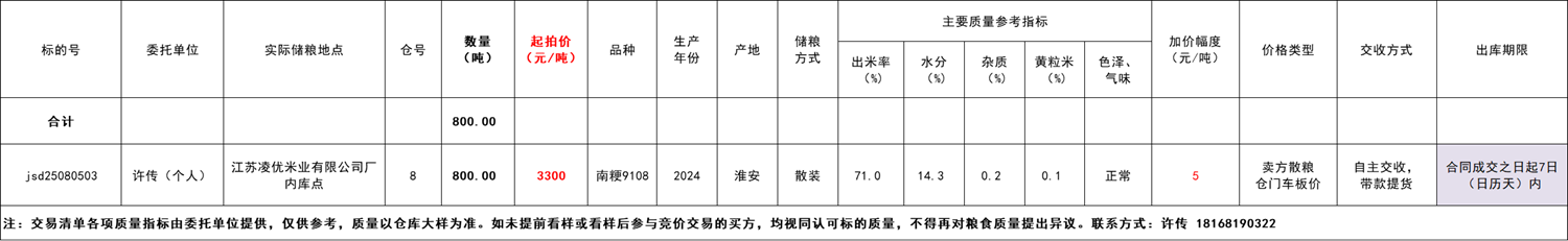 8月5日江苏(淮安淮阴)地方粳稻(南粳9108)竞价销售交易公告-许传