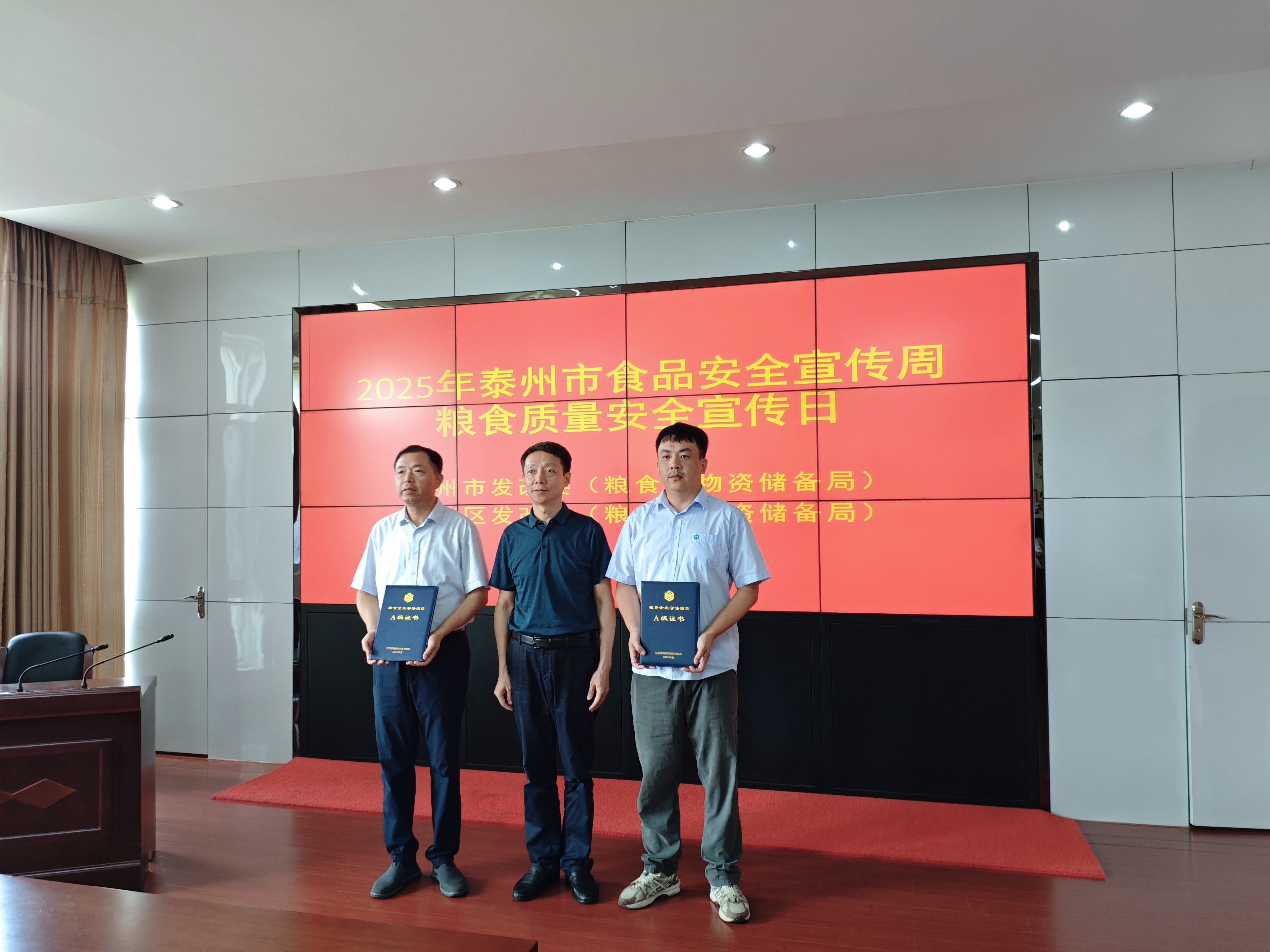 本次活动紧扣“坚持标准引领、强化质量支撑、倡导爱粮节粮”主题,通过多种形式扎实推进粮食质量安全宣传工作。宣传活动现场,通过发放宣传手册、设立咨询台答疑解惑等方式,宣传普及粮食质量安全和营养健康知识。为强化粮食企业诚信经营意识,泰州市发改委向泰州国家粮食储备库有限公司、中储粮泰州直属库有限公司2个单位颁发粮食企业信用评价等级证书,以先进标杆激励更多粮食经营主体恪守质量底线;此外,泰州市粮油质监所有关人员围绕健康饮食、科学储粮等群众关心问题开展了科普专题讲座。活动最后,与会人员参观了市粮油质监所,直观了解粮食质量检验监测工作流程。