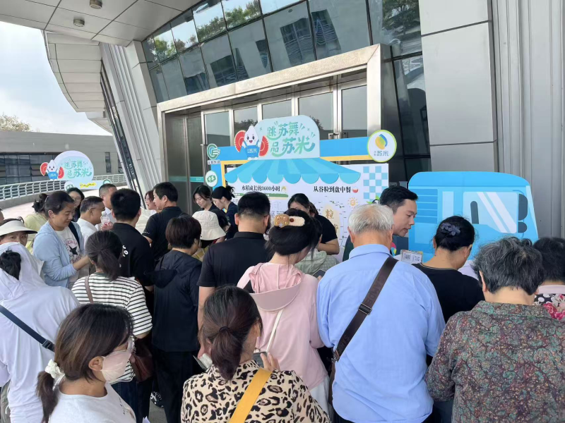 活动首站聚焦“水韵苏米”品牌建设推广。全体党员前往东南大学九龙湖校区体育馆,参加“水韵苏米”全国行南京场活动。在“茉莉花开·苏舞飞扬”为主题的广场舞展演现场,设置“苏米市集”“米食尝鲜”“企业展销”三大板块,两支部党员与现场师生、市民、参赛选手共同体验“五谷杂粮知多少”互动游戏,品鉴优质苏米现场蒸煮的米饭及大米衍生饮品,通过沉浸式体验,近距离了解品牌故事、扩大品牌影响、赋能产业发展。