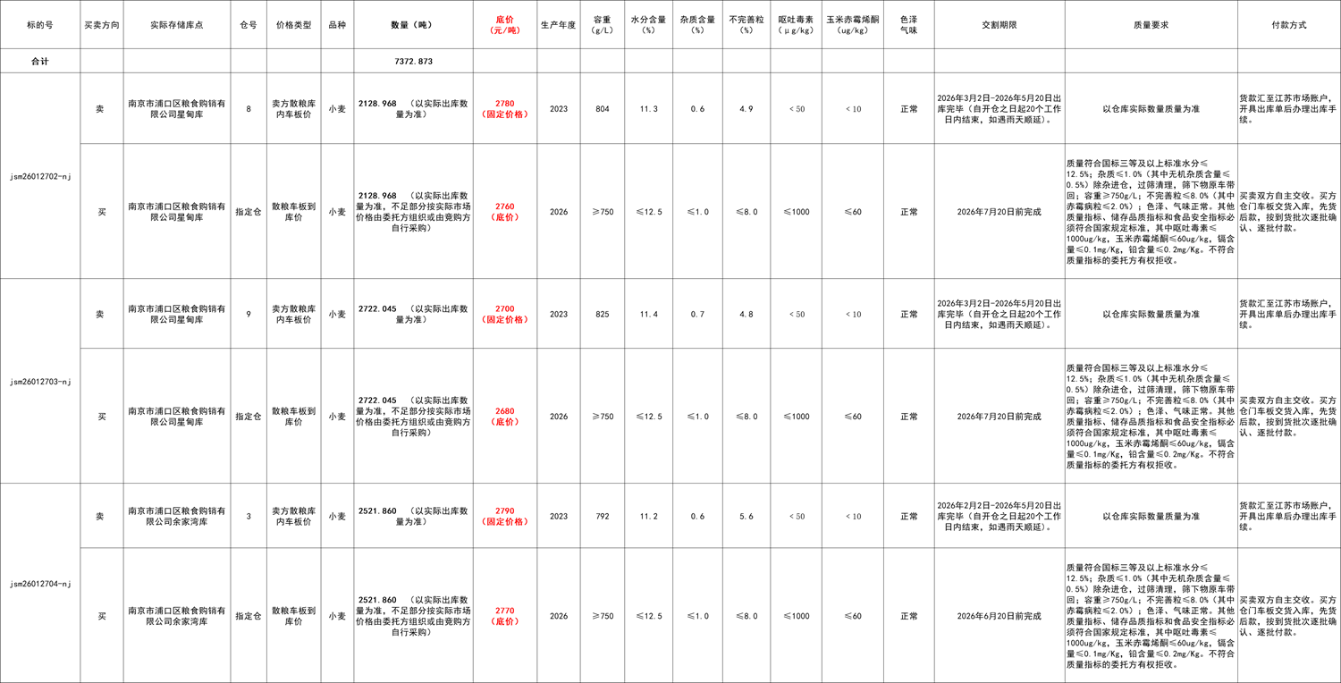 1月27日江苏(南京浦口)地方小麦购销双向竞价(以销竞采)交易公告