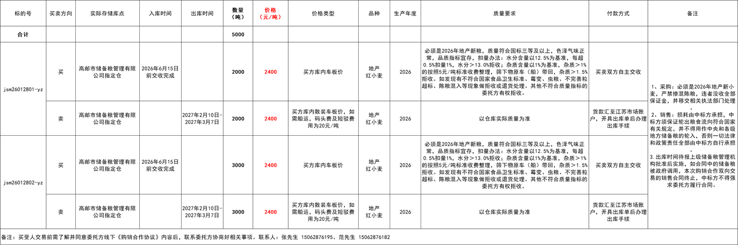 (一)本次交易采用国家粮食交易平台购销合作双向竞价功能实现,交易规则以本公告公示为准,实际系统操作解释权归江苏市场所有。