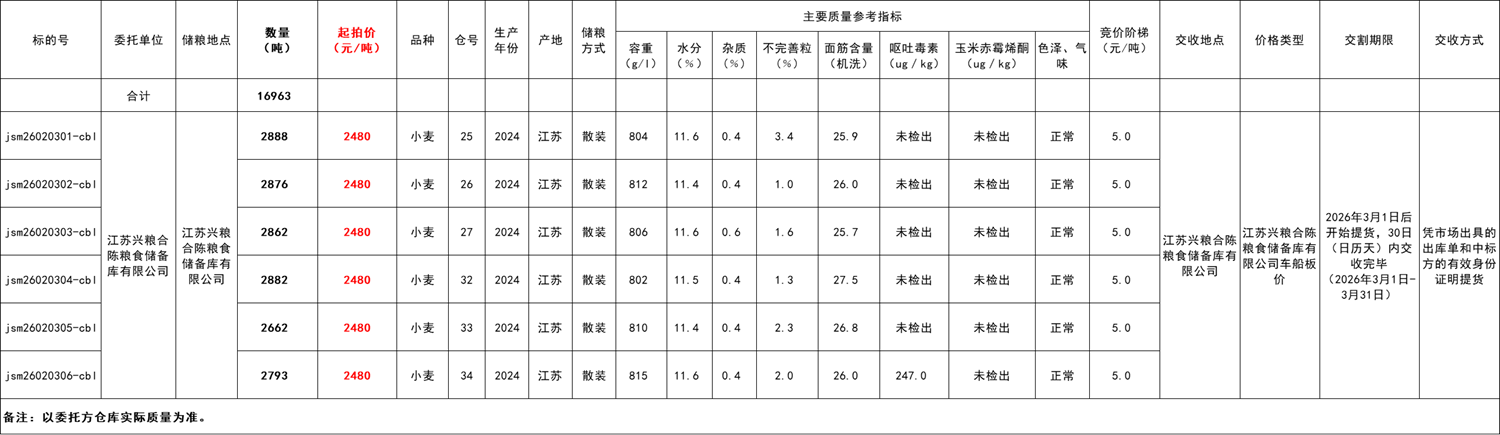 交收地点:江苏兴粮合陈粮食储备库有限公司,详见交易清单。