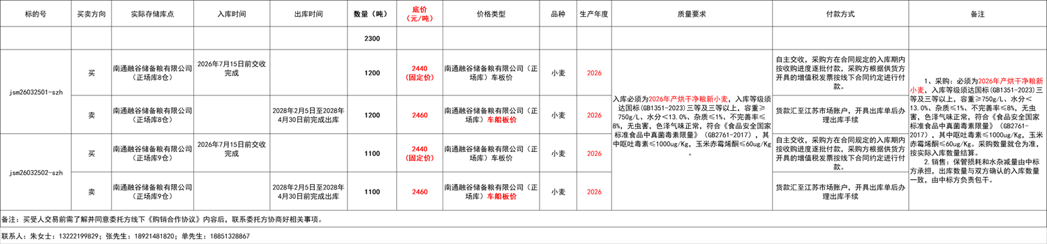 受南通融谷储备粮有限公司委托,江苏粮油商品交易市场暨苏中分中心举办本次地方小麦购销合作双向竞价交易活动。具体事宜公告如下: