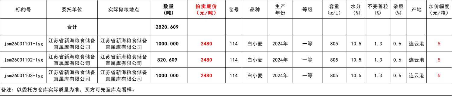 受江苏省新海粮食储备直属库有限公司委托,江苏粮油商品交易市场暨连云港分市场举办本次地方小麦竞价销售交易活动。具体事宜公告如下:
