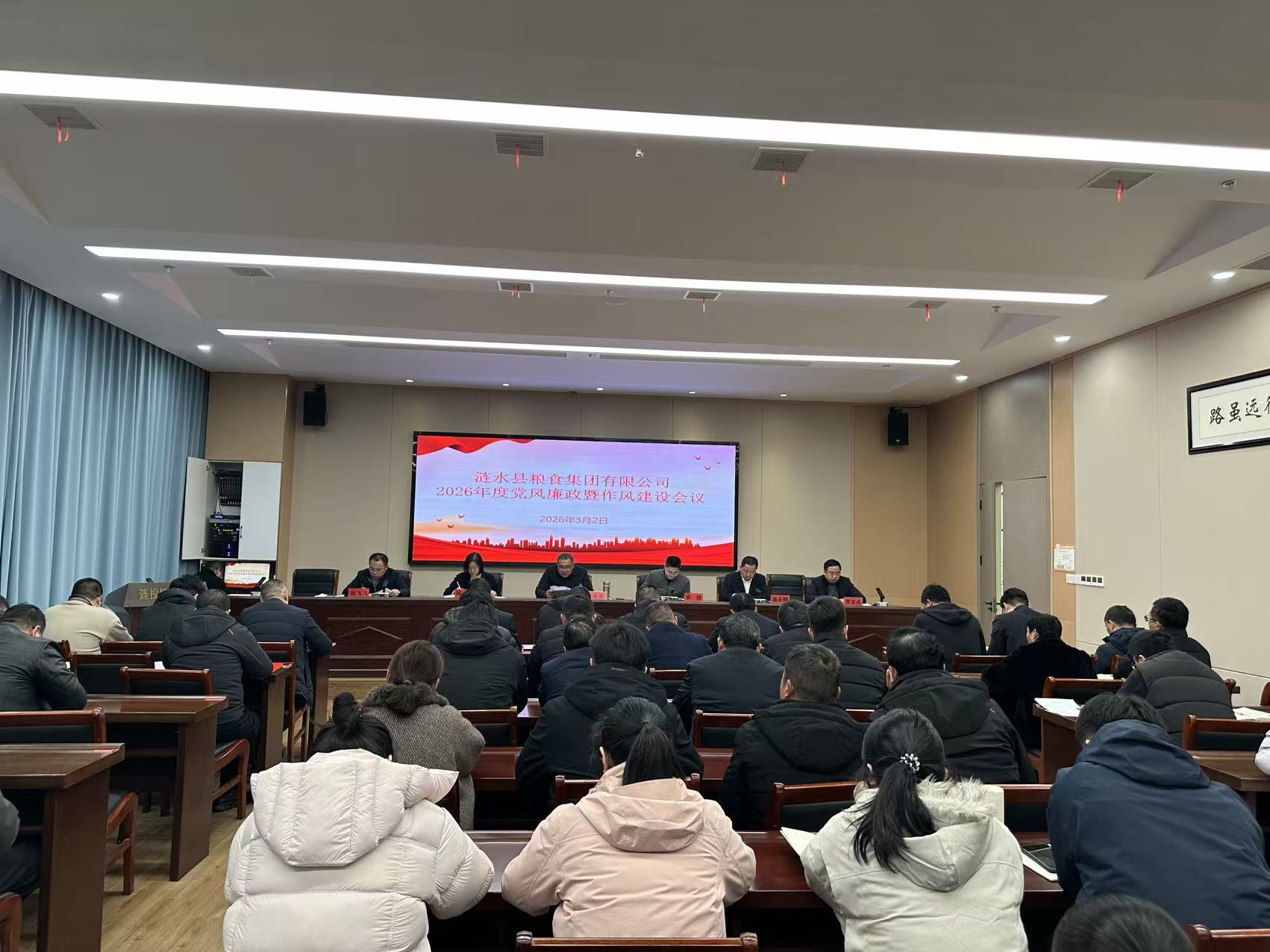 为全面贯彻落实中央、省市县纪委全会精神,持续深化党风廉政建设和反腐败斗争,切实加强作风建设,筑牢拒腐防变思想防线,3月2日,涟水粮食集团举行2026年度党风廉政暨作风建设工作会议,以严实举措部署全年相关工作,为守护地方粮食安全、推动集团高质量发展筑牢纪律保障。