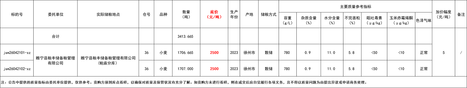 受睢宁县粮丰储备粮管理有限公司委托,江苏粮油商品交易市场暨徐州分市场举办本次地方小麦竞价销售交易活动。具体事宜公告如下: